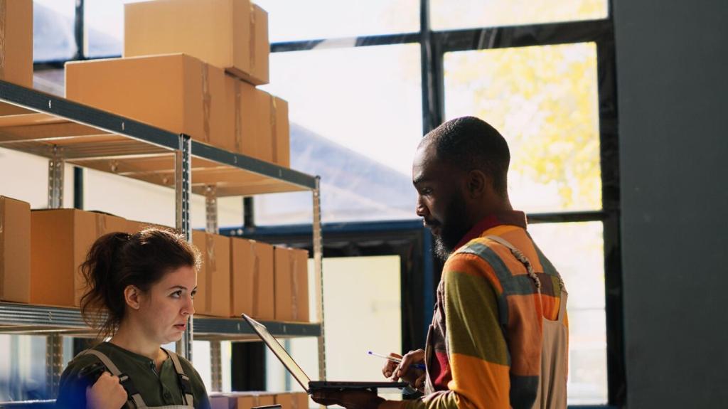 Digitale Frachtenbörsen, Kollaboration mit Komplementärnetzwerken und smarte Tourenplanung reduzieren Leerfahrten. Palettenrückführungen und Mehrwegverpackungen senken Kosten doppelt. Ein wöchentliches Review falsch dimensionierter Gebinde deckt stille Kostentreiber auf – probieren Sie es aus und berichten Sie.